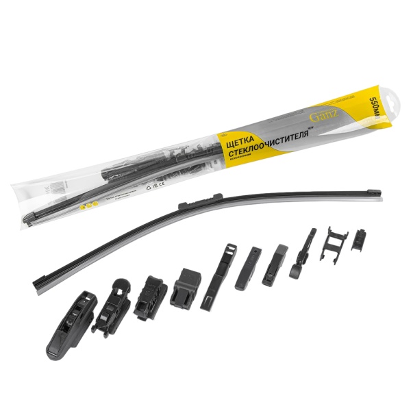 Щетка стеклоочистителя 550 мм бескаркасная 1 шт GANZ NEW GIS01035 (10 адаптеров)