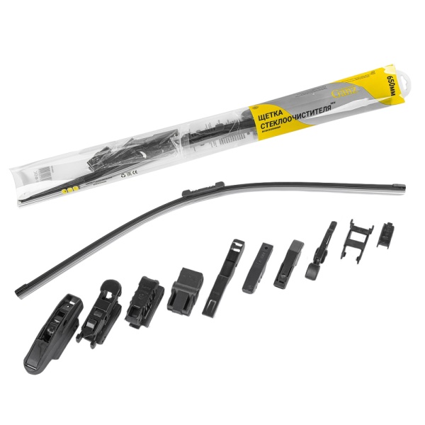 Щетка стеклоочистителя 650 мм бескаркасная 1 шт GANZ NEW GIS01037 (10 адаптеров)