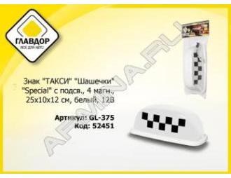 Знак ТАКСИ с подс. 4магнита "ГЛАВДОР" белый GL-375